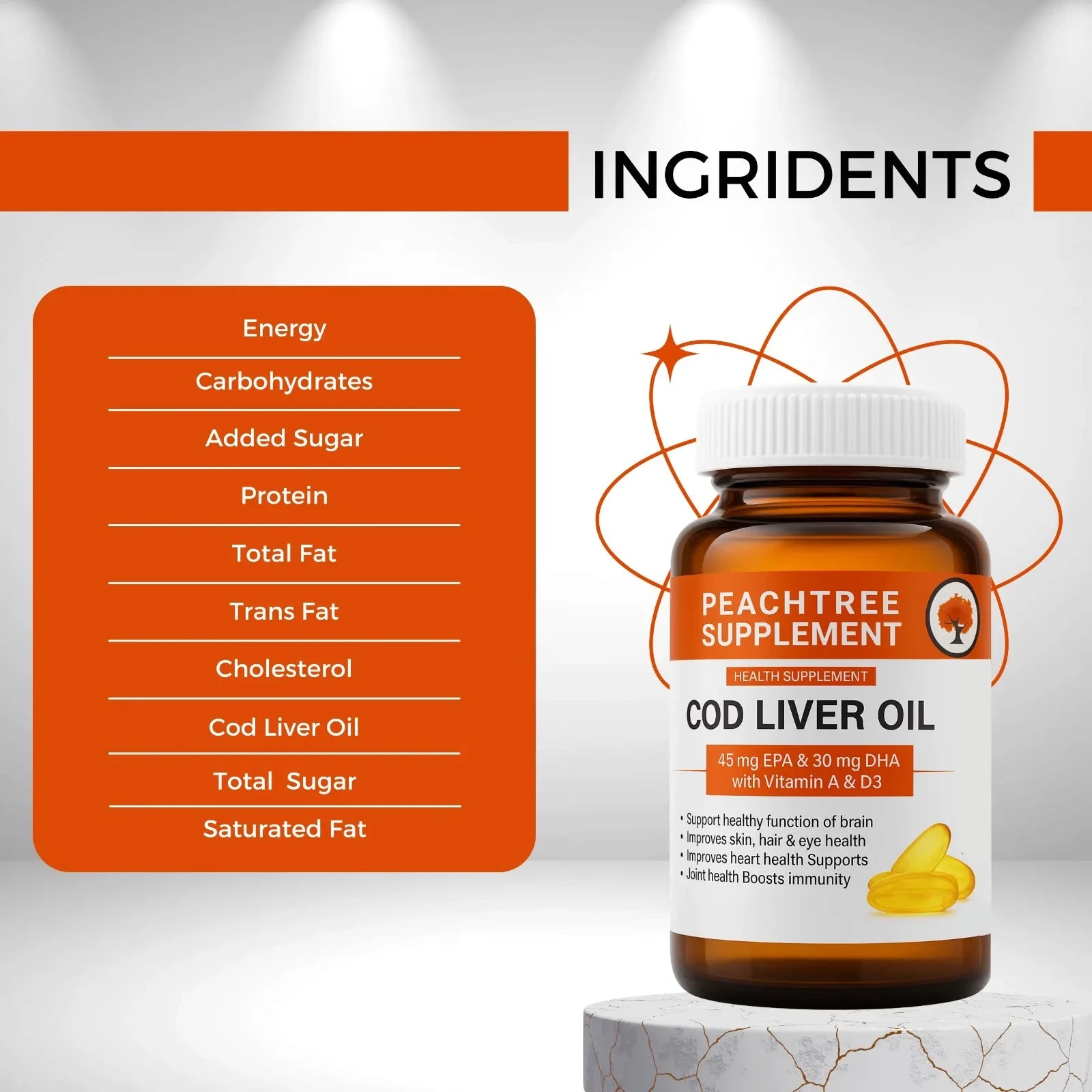 Peachtree Cod Liver Oil is a natural source of Omega-3 fatty acids and Vitamin D, supporting strong bones, healthy skin, and better immunity. It also enhances heart and brain function naturally.